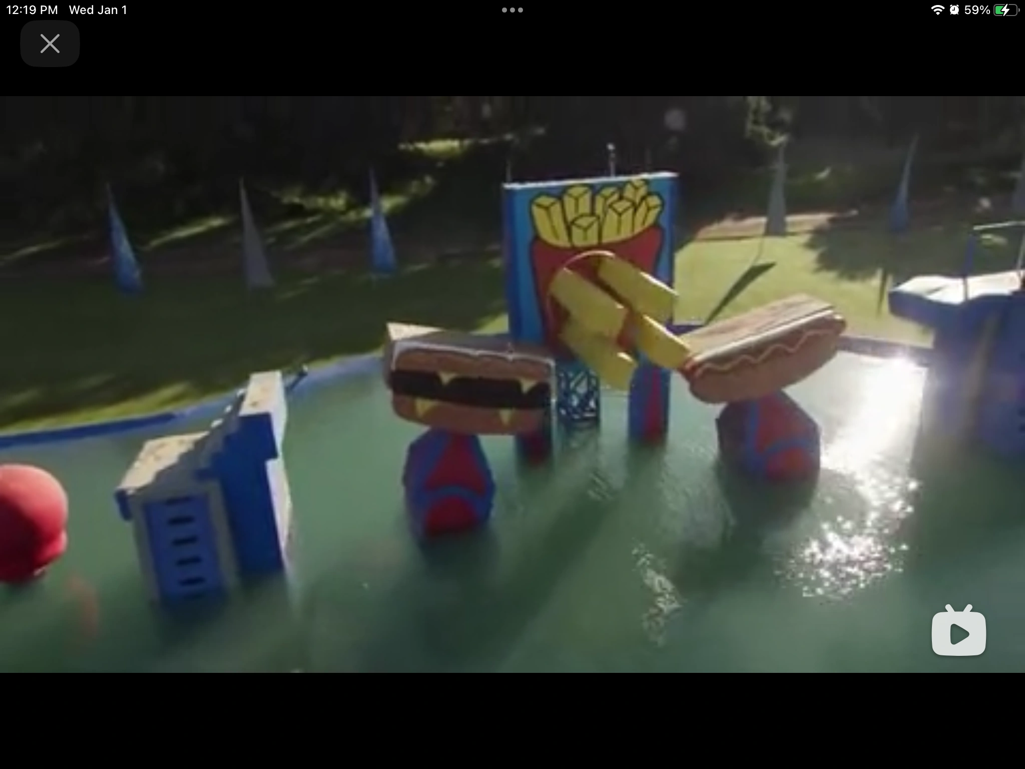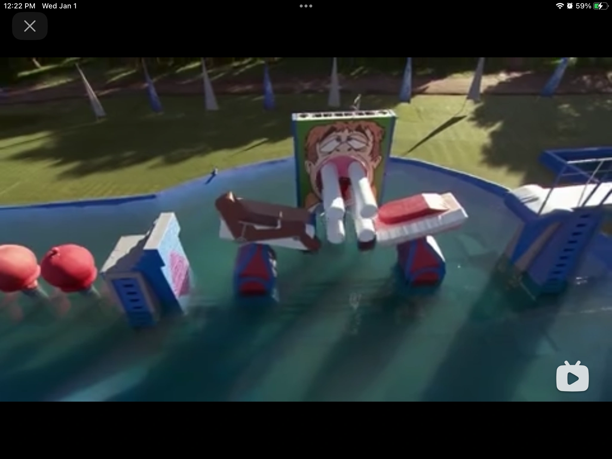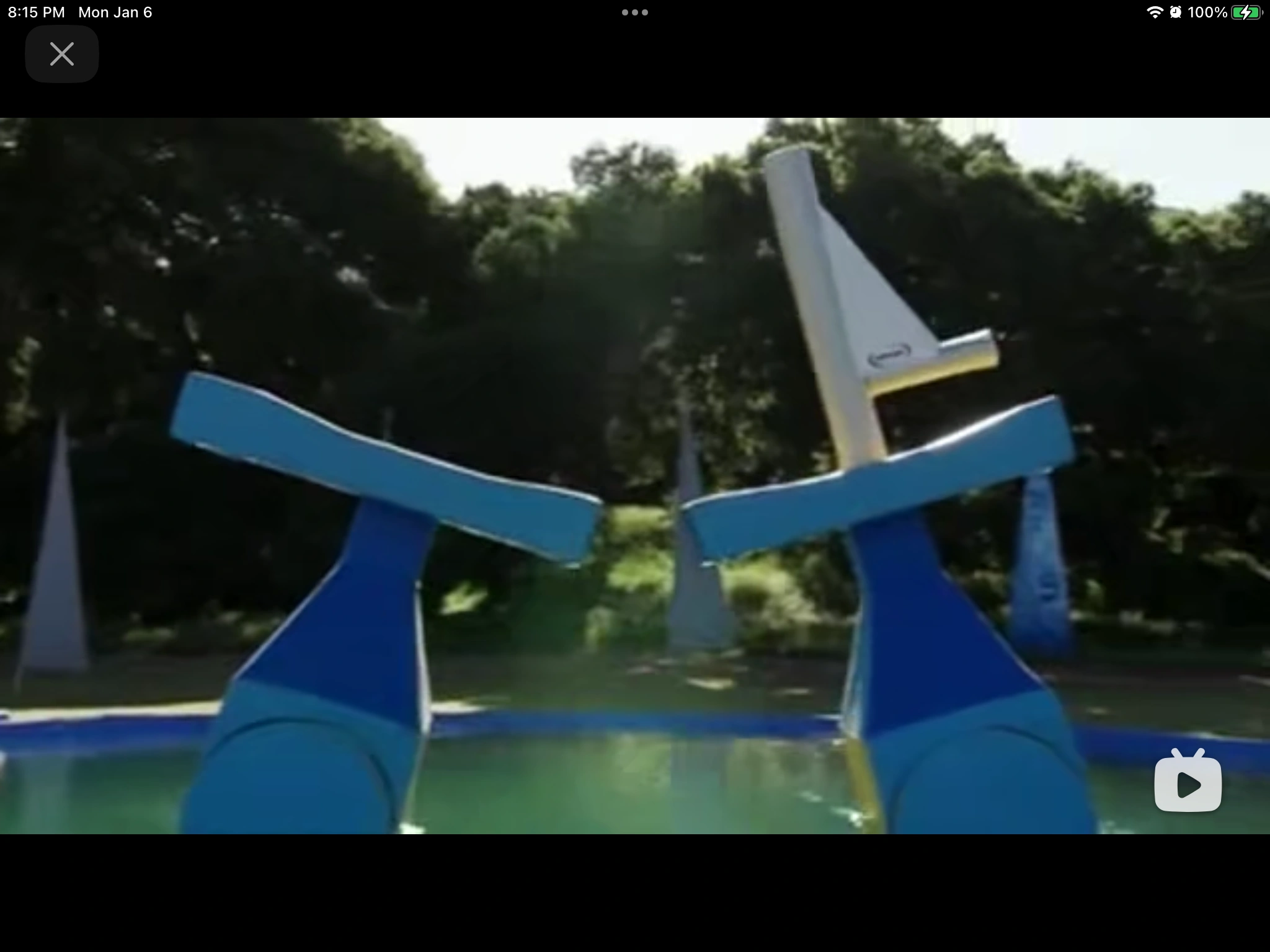 It is two shaking platforms that contestants must cross to get to the other side. It is unique in that like the Shake-a-lator, it toyed with a lot of people and made them jiggle. As soon as they attempt to jump from platform to platform, they move away. The second platform is usually dressed up in some way.